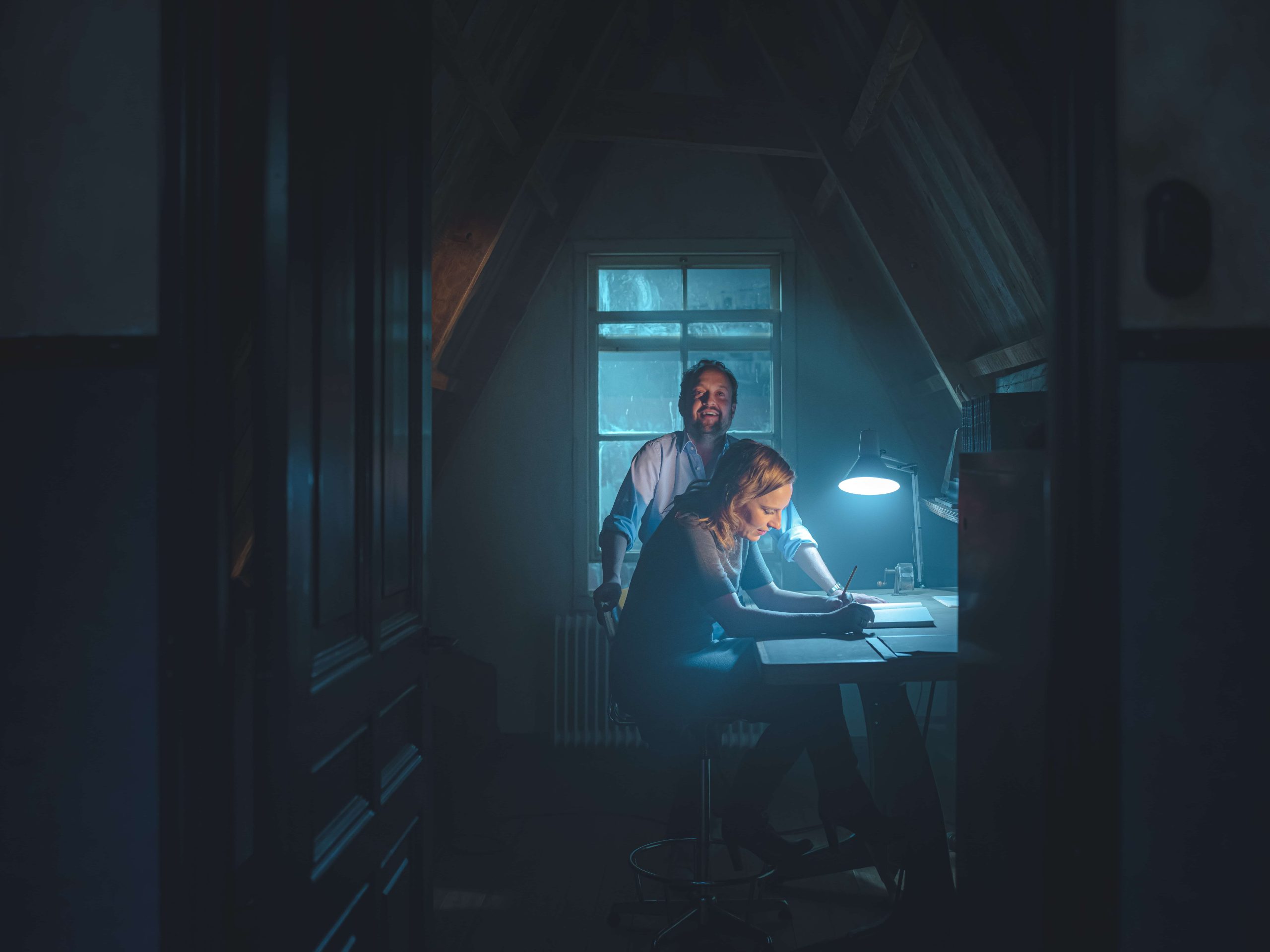 Together with Caroline, Harald forms a creative duo. Within their working methods, Harald is the one who comes up with the original ideas, and when they write scripts together, who comes up with the initial texts. Caroline is the one who gives immediate criticism and polishes the diamonds in the rough, such as “I don’t feel that” or “that’s not what that character would say”. In addition, she keeps Harald on his toes when it comes to including too many references to favorite movie scenes, and Harald in turn pushes Caroline not to think too small or underestimate herself.